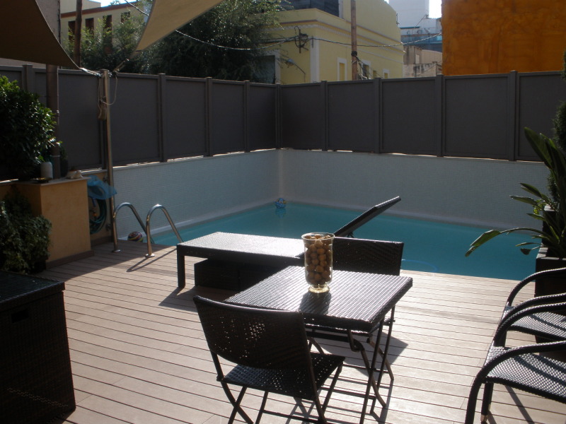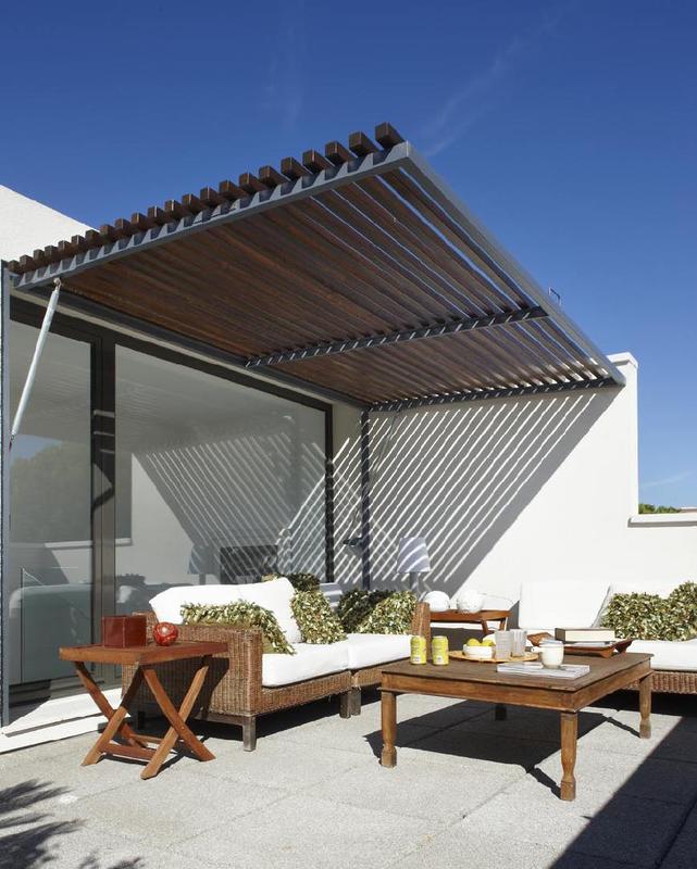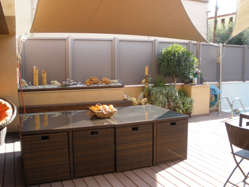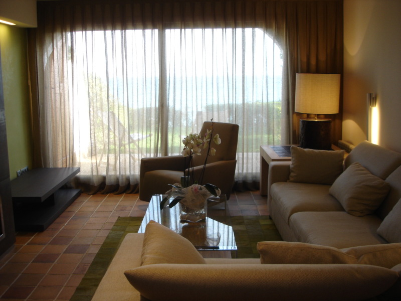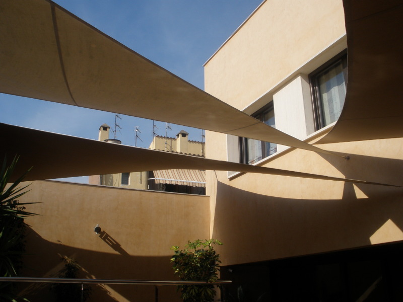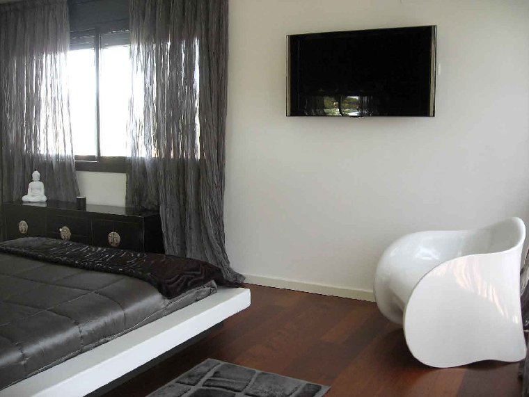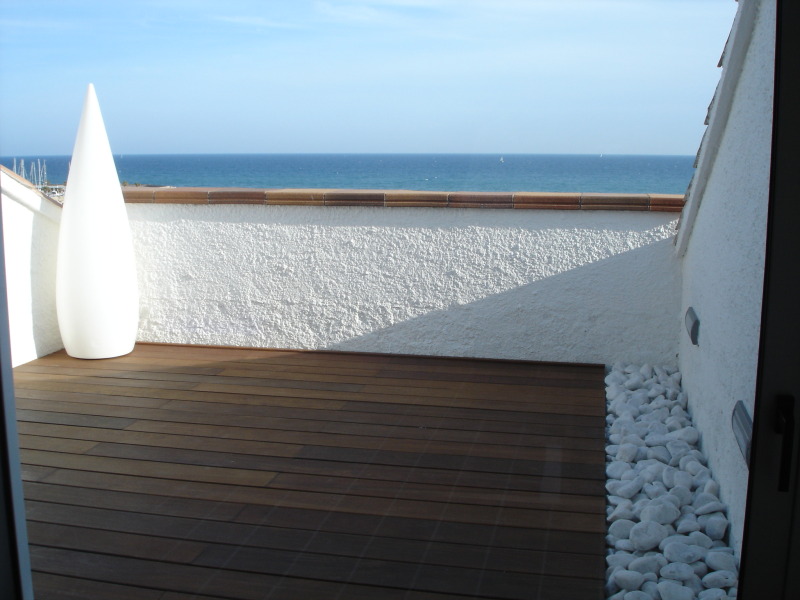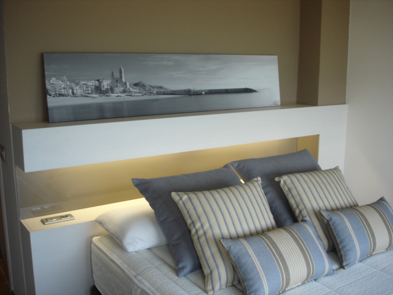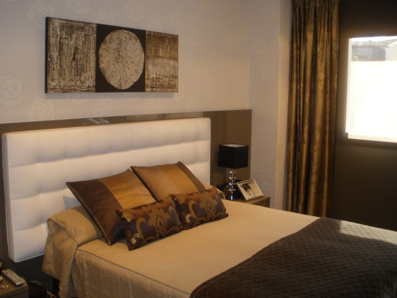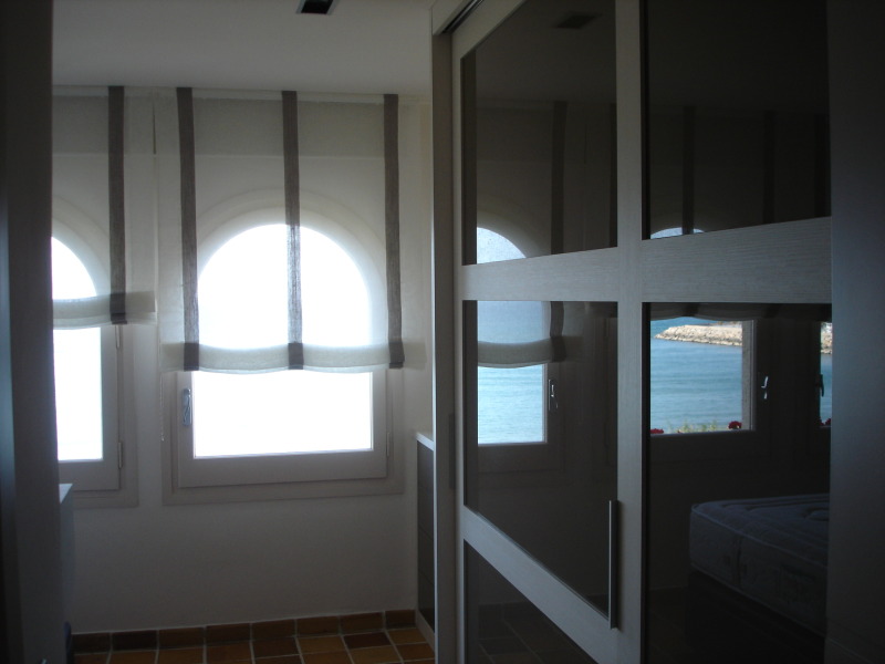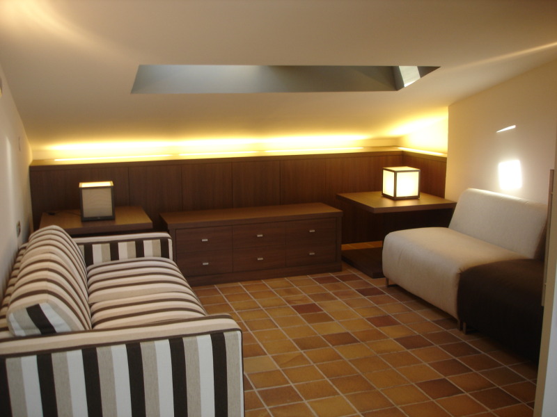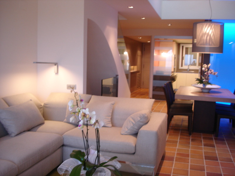 En la siguiente reforma cabe mencionar el sistema de entoldado y la velería utilizada en la terraza exterior para preservar la intimidad del cliente ; tonos anaranjados predominan en su decoración interior, contrastados con mobiliario en piel oscura ; Dormitorio principal rico en tonos caquis y verdes oro; tejidos suministrados por Gancedo y Nya Nordiska.