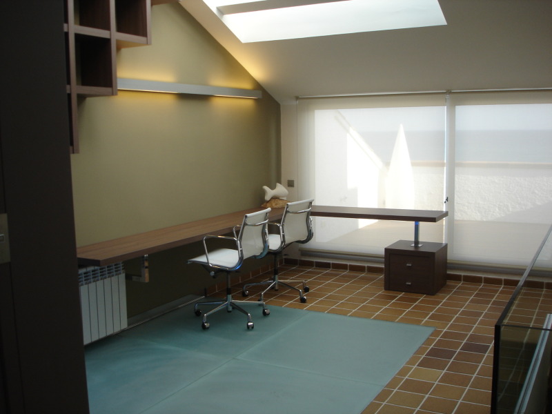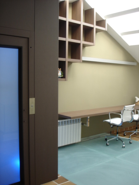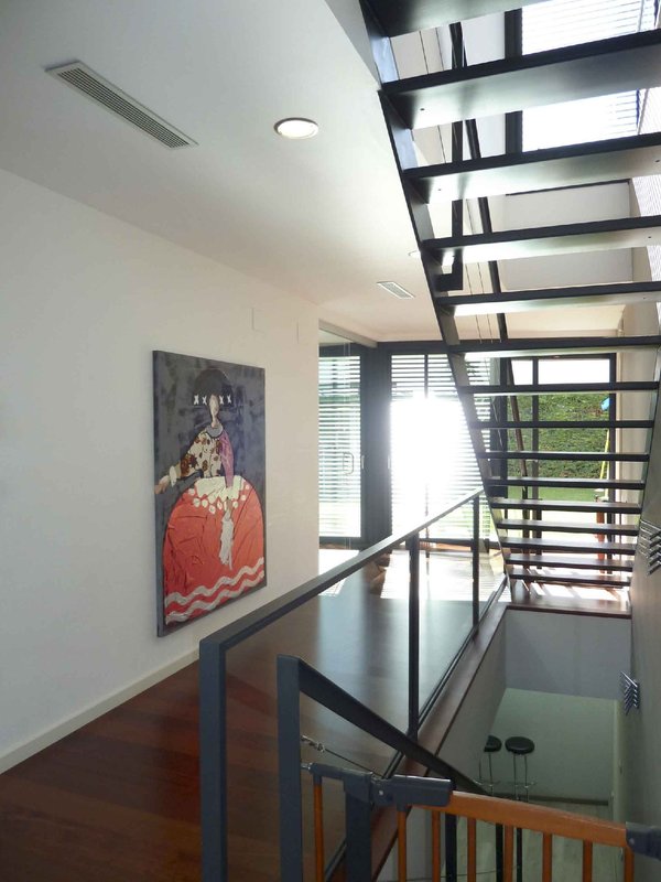 La necesidad básica del cliente fue integrar un ascensor para comunicar las diferentes plantas de la vivienda. La planta superior quedó totalmente practicable al anular el doble espacio con una estructura metálica cubierta en vidrio laminado como pavimento.